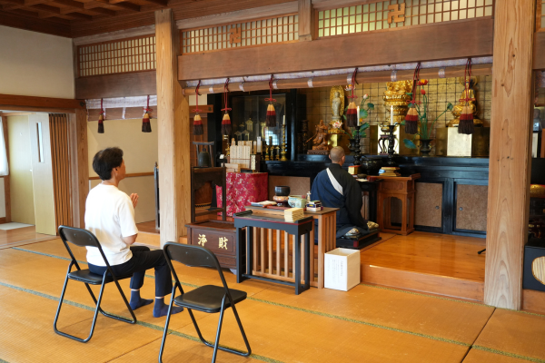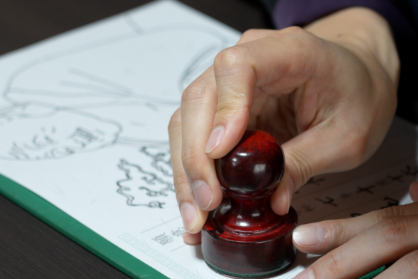完成した仏画には、寺の印が丁寧に押され、本堂にてご祈祷が行われます。
