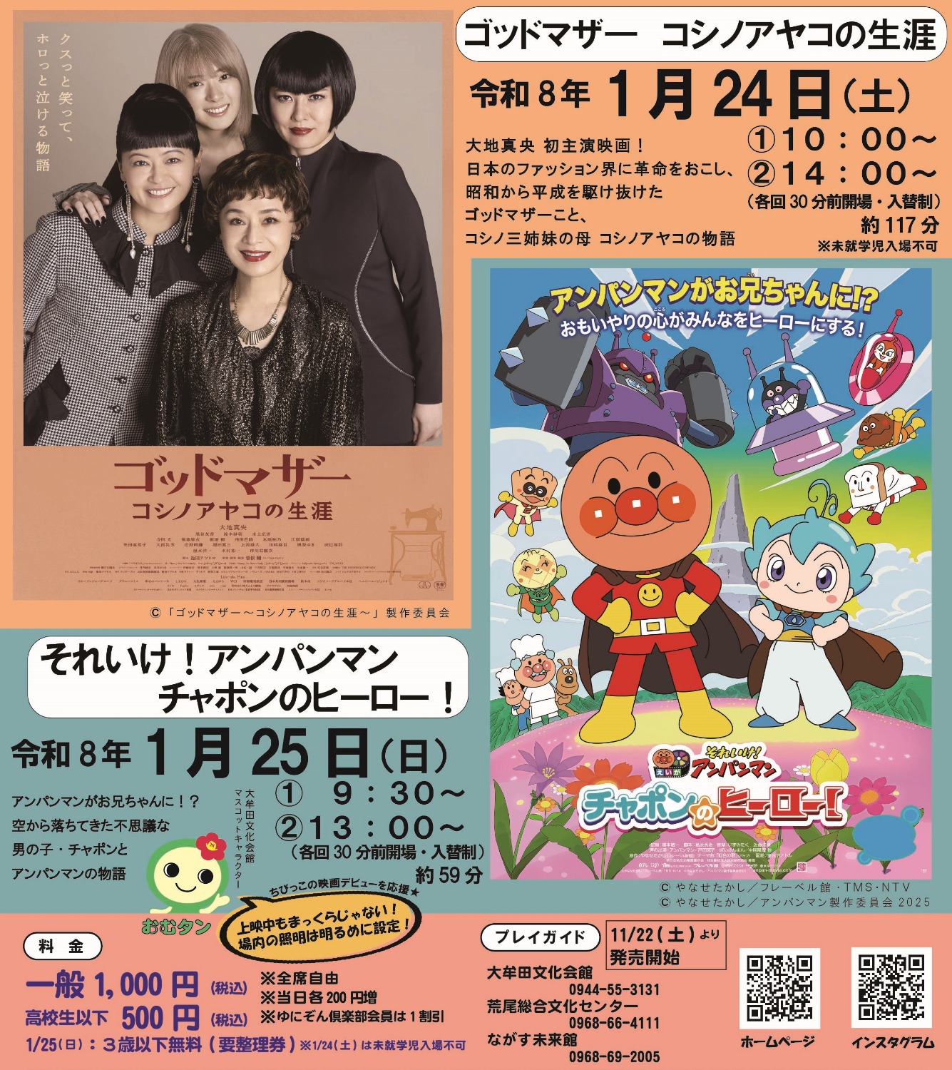 - 料金:全席自由 一般1,000 円、高校生以下500 円(税込)
