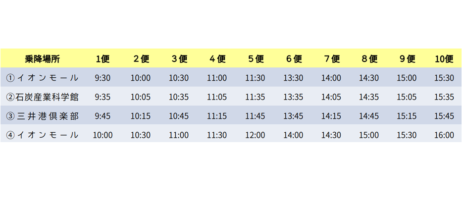 どなたでも無料で乗車することができますので、この機会に、大牟田市の景色や街並みをゆっくりと楽しみながら、三池炭鉱関連施設を巡ってみませんか。